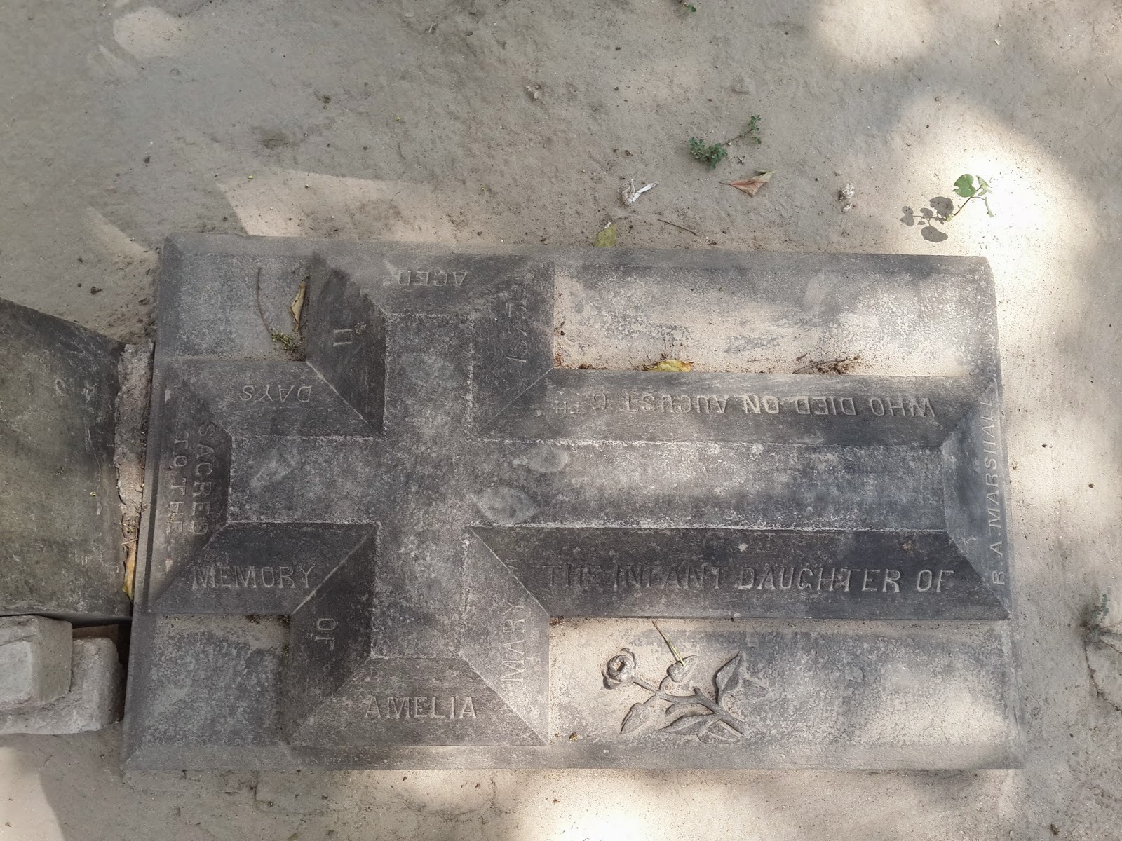 SACRED TO THE MEMORY OF AMELIA MARY THE INFANT DAUGHTER OF R.A. MARSHALL WHO DIED ON AUG 6TH 1873 AGED 11 DAYS